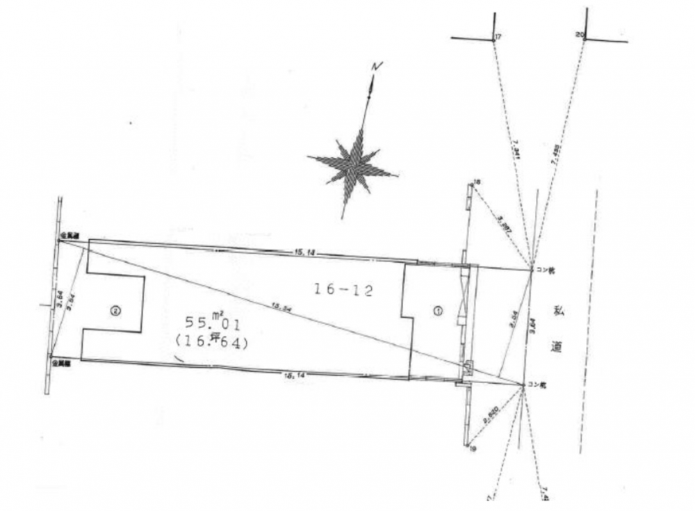 土地面積 (私道含まず) 公簿 55.07 m(約16.65 坪)